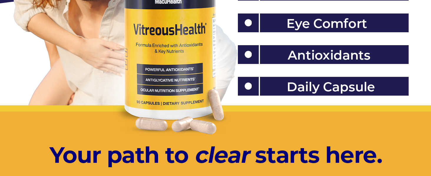 VitreousHealth is an eye floater formula that contains antioxidant and anti-glycative nutrients, the effectiveness of which was published in Translational Vision Science and Technology.